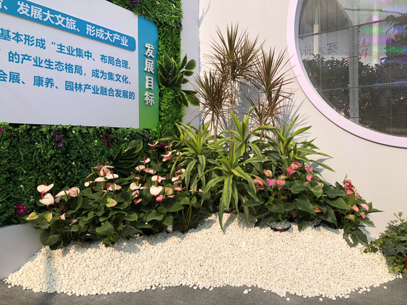 第七屆文博會勝利召開之際,濟(jì)南百合園林集團(tuán)向國內(nèi)外參展商展示了我們精湛的園林工程、專業(yè)的設(shè)計團(tuán)隊、豐富的種植經(jīng)驗。苗木種植基地提供的鮮花綠植成為展位一大亮點,清新百合、艷麗紅掌及香氣撲鼻的梔子花等,競相盛開,為活動現(xiàn)場增加了清新綠色的氛圍,專業(yè)園藝師現(xiàn)場為大家展示插花技藝,一盆盆小型的普通植物被設(shè)計、裝點、組合成觀賞度很高的花卉盆景,吸引了現(xiàn)場眾多觀眾駐足、品鑒。