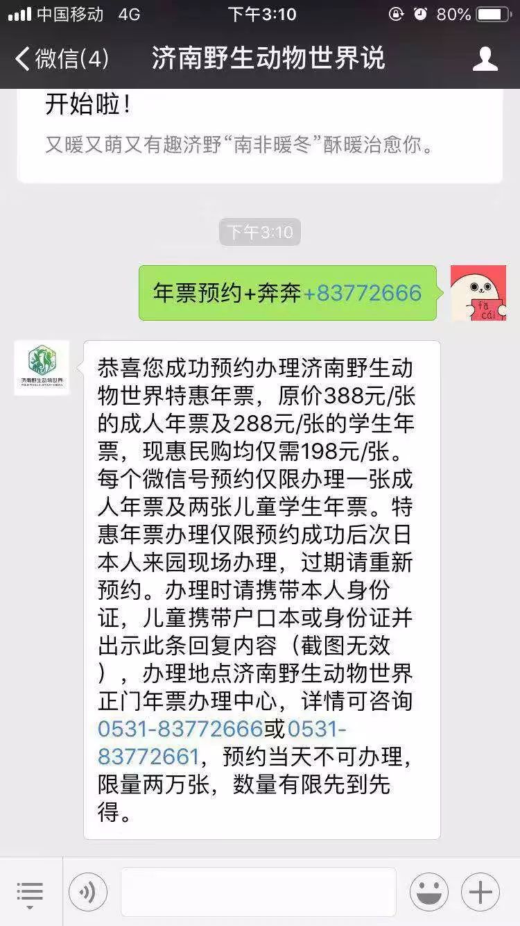 預約方式:關注景區微信公眾號(“濟南野生動物世界”或“濟南野生動物世界說”)僅限辦理日前一天后臺留言預約,預約成功后即可辦理。