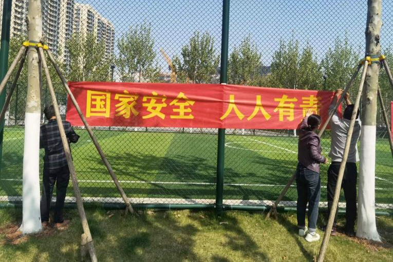 通過制作“國家安全 人人有責”宣傳條幅,懸掛在望岳康體公園項目醒目位置,營造了良好的宣傳氛圍。
