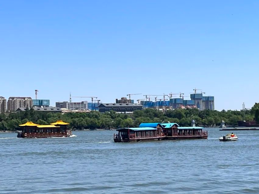 同時,游船班組立即啟動應急預案,就近組織兩艘游船至事故現場,將游客疏散轉移。為確保游客人身安全,防止發生二次事故,班組調度救援快艇維持周邊水面秩序,用喇叭向周邊小劃船喊話禁止靠近故障游船。游客全部換乘轉運后,救援隊伍將游船就近拖至安全地帶,進行檢修。