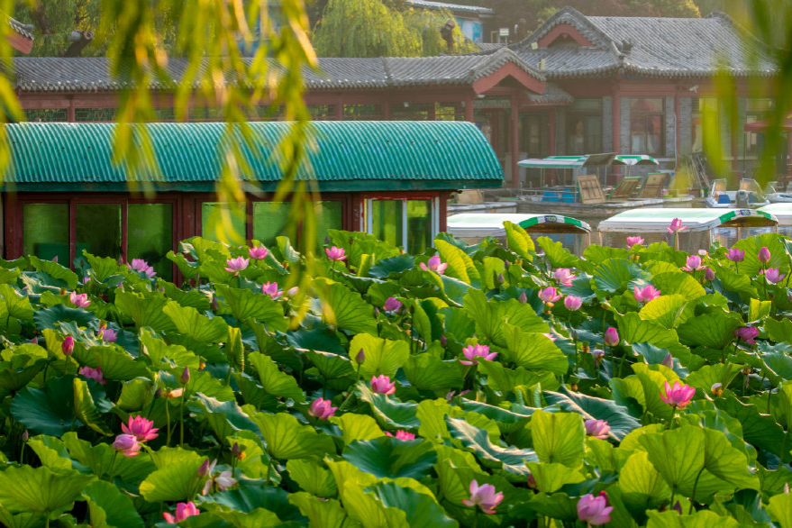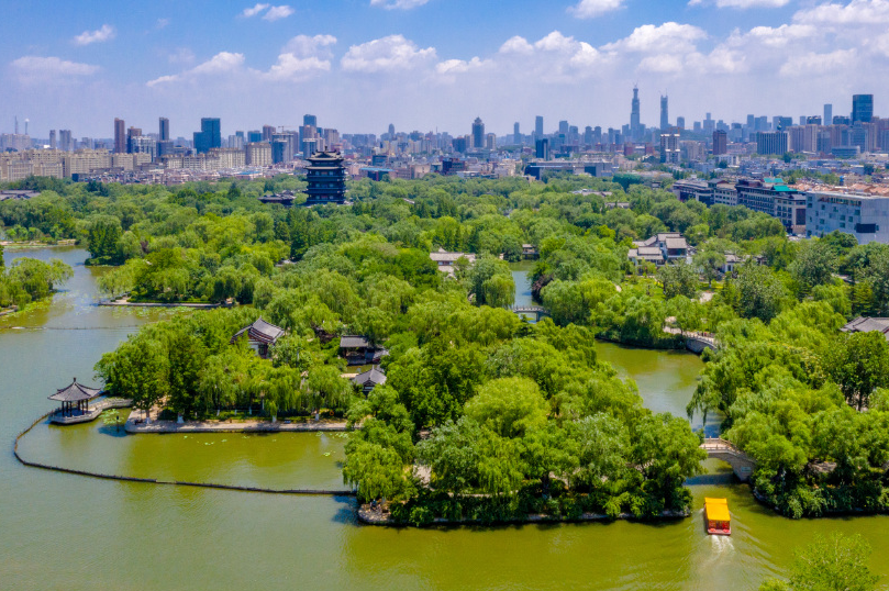 夏日的大明湖會舉辦荷花節,期間近百種荷花匯聚于此,靜靜綻放在每一個角落。一大片碧綠的荷葉,包裹著一朵朵爭相斗艷的荷花,美不勝收。