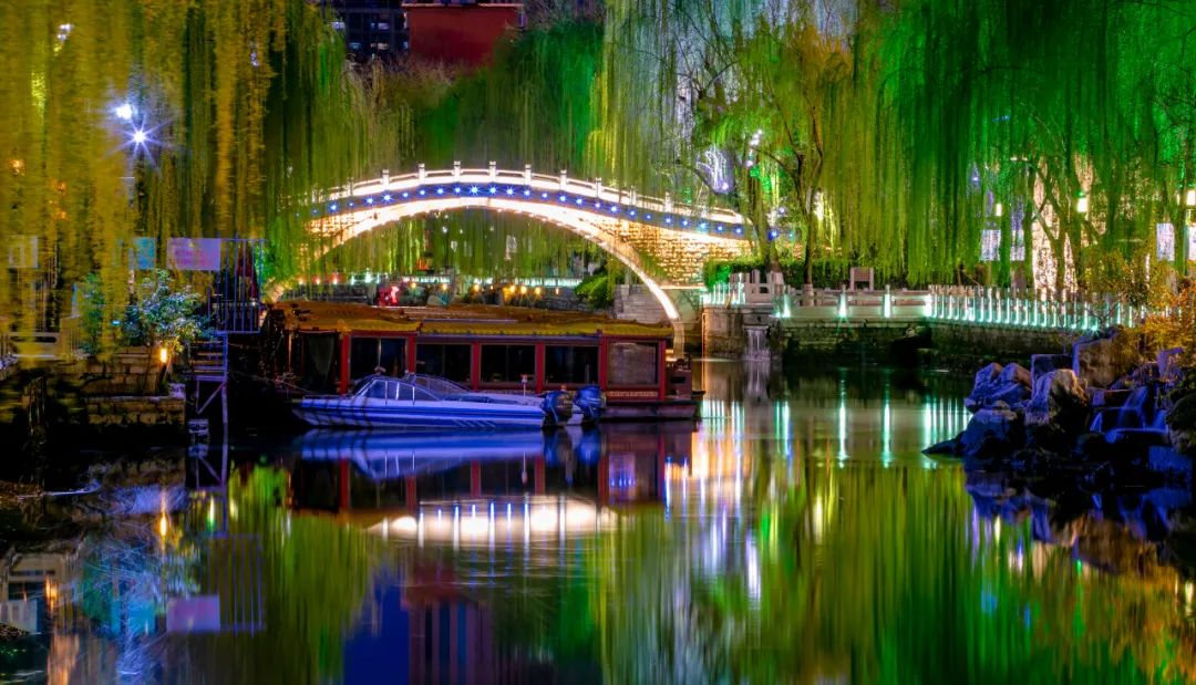 月上柳梢頭,人約黃昏后,夜幕落下,泉城濟南在燈光的勾勒下風雅秀麗,猶如抹上了艷麗的濃妝。