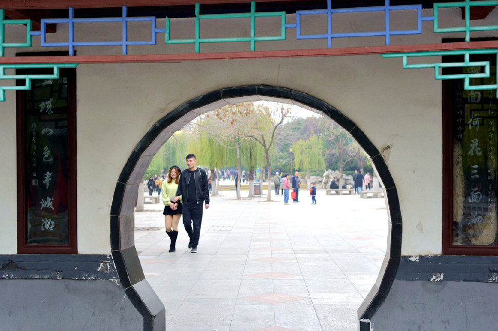 此聯(lián)石刻至今嵌在庭園西廊壁洞門兩側(cè),這副對聯(lián)幾百年來一直受到后人們的推崇與喜愛,已成為形容濟(jì)南古城風(fēng)貌的名聯(lián)佳句。