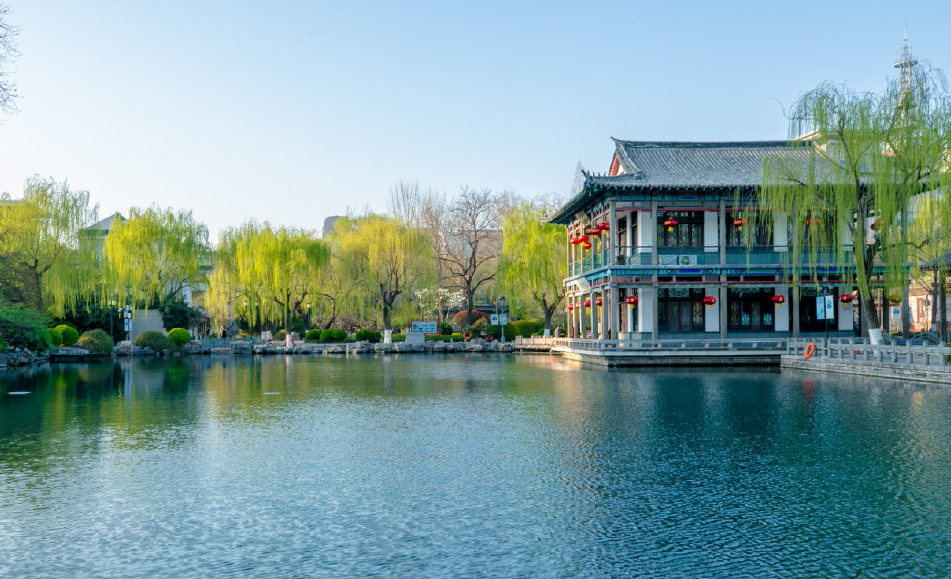 五龍潭水面寬闊,澄澈如鏡。怪石嶙峋的假山,靜默地守護著一汪汪清泉。這里有潭、池、溪、港構成的秀美景觀,也有秦瓊忠肝義膽的故事傳說,所有的一切,都讓五龍潭吸引無數游人來此,或聽泉賞魚,或游覽古跡舊址,在燦爛的花樹間流連忘返。這些關于五龍潭的秘密你知道多少?