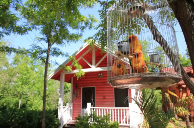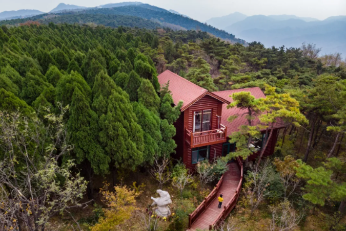 在濟南南部山區跑馬嶺景區,神秘而古樸的小木屋坐落在森林深處,這里還有草廬動物主題民宿,很適合一家人出行住宿。