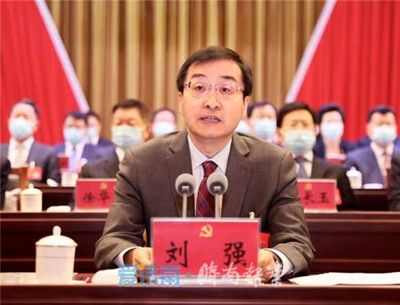 劉強在閉幕式上講話。他指出,這次大會,按照中央部署和省委要求,在全體代表的共同努力下,開得很成功、很圓滿,是一次與時俱進、繼往開來的大會,是一次民主和諧、團結勝利的大會,是一次凝心聚力、催人奮進的大會。這次大會從思想上、政治上、組織上,為濟南牢記習近平總書記殷殷囑托,勇當“三個走在前”排頭兵,奮力開創新時代社會主義現代化強省會建設新局面,奠定了堅實基礎,提供了堅強保證,具有重大而深遠的意義。大會閉幕后,學習好、宣傳好、貫徹好市第十二次黨代會精神,是全市上下當前和今后一個時期的一項重要政治任務。全市各級黨組織要切實加強組織領導,引導廣大黨員干部充分認識這次黨代會的重大意義,認真學習黨代會報告,準確領會黨代會精神,結合各自實際,抓緊研究制定貫徹落實黨代會精神的具體措施,確保黨代會確定的重大決策部署和各項目標任務落到實處、見到成效。各位代表來自各行各業、各條戰線,要充分發揮聯系群眾、貼近基層的優勢,帶頭學習宣傳黨代會精神,帶頭在本職工作中貫徹落實黨代會任務部署,帶頭為省會高質量發展貢獻智慧和力量。讓我們更加緊密地團結在以習近平同志為核心的黨中央周圍,高舉習近平新時代中國特色社會主義思想偉大旗幟,不忘初心、接續奮斗,只爭朝夕、銳意進取,當好“三個走在前”排頭兵,奮力開創新時代社會主義現代化強省會建設新局面,以優異成績迎接黨的二十大勝利召開。