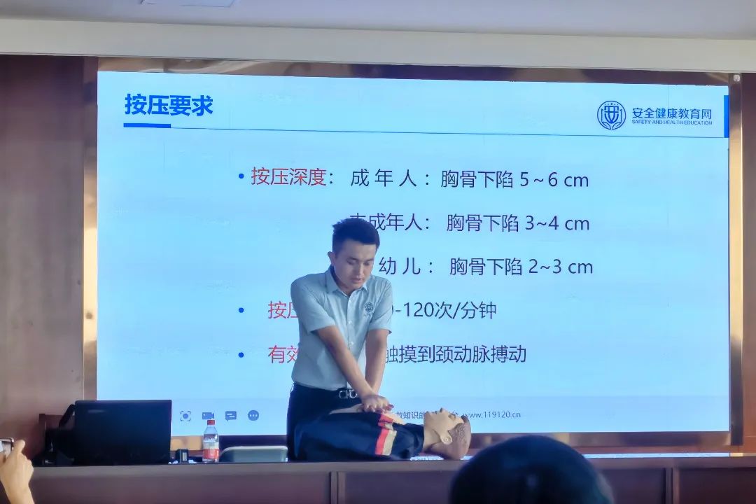 授課期間,健康教育專家通過課件的形式圍繞著職業(yè)健康知識普及如何實施職業(yè)健康保護、如何預(yù)防心腦血管疾病等方面的內(nèi)容進行了深入淺出的講解。同時,為了進一步提高培訓(xùn)效果,使大家真正掌握實操的處置能力,在完成授課內(nèi)容后,又組織安排實施了心肺復(fù)蘇胸外按壓應(yīng)急救護模擬練習,大家按照講解的操作流程,積極參與演練,在專家的指導(dǎo)下,大家操作規(guī)范,方法得當,模擬練習取得圓滿成功。
