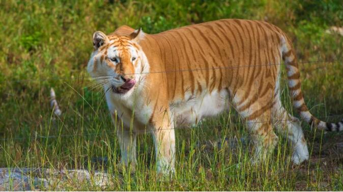 金虎數量極少,與之其他老虎的毛發摸起來扎手相比,金虎的毛發就十分柔軟舒服。金虎雖是孟加拉虎的正常變異,體型卻比原有的孟加拉虎還要大一些,但是還沒有達到東北虎的那種程度,只是稍微大一點點。孟加拉虎是世界上第二大的老虎品種,也是最兇猛的老虎品種。