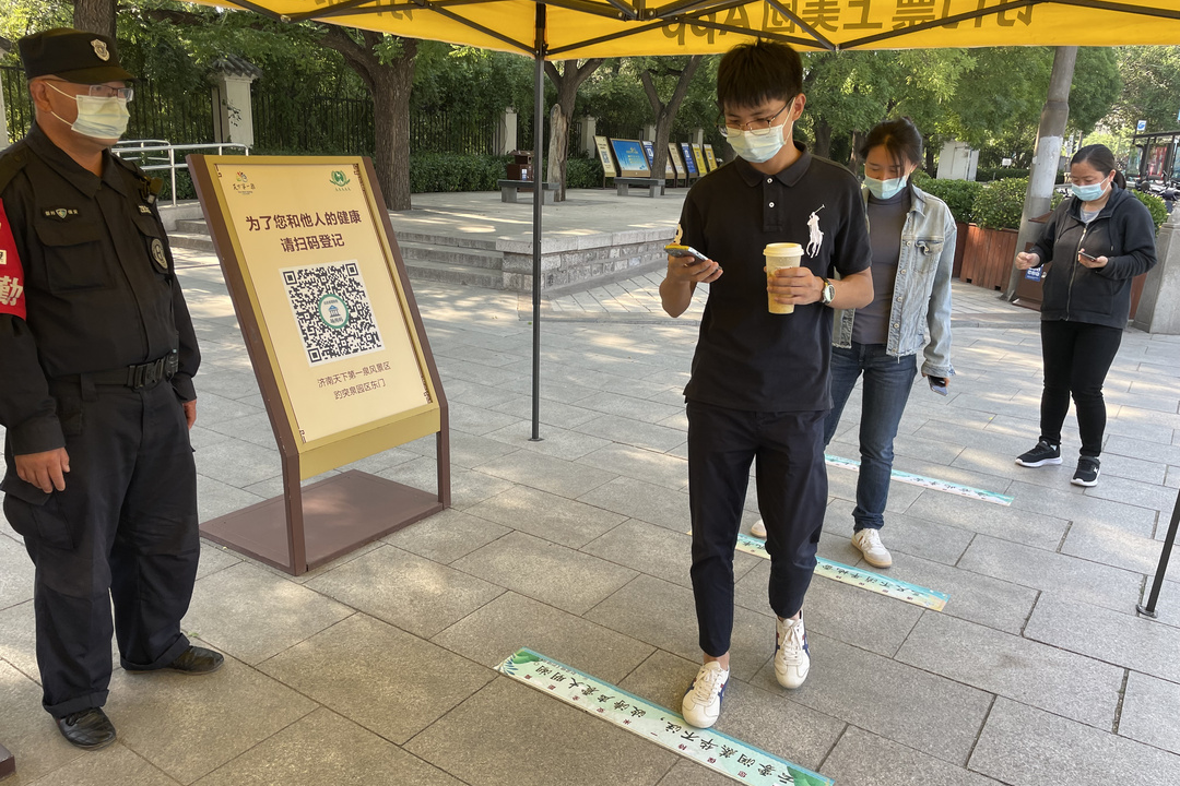 自疫情發生后,“表情嚴肅的‘一米線’”地貼普遍出現在核酸檢測現場和公共場所門口,令人有些“望而生畏”。但近期,趵突泉園區推出的創意“一米線”地貼一改往日畫風,不僅看上去色彩更加柔和豐富,上面還添加了景區相關詩詞對聯,濃濃的文化氣息。以后,大家排隊時,不用無聊只刷手機了。