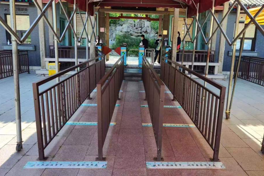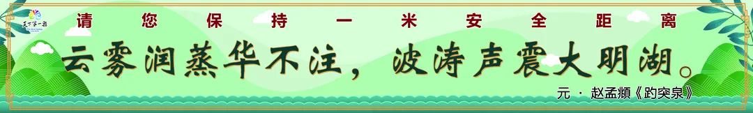“四面荷花三面柳,一城山色半城湖”“云霧潤蒸華不注,波濤聲震大明湖”“梁燕語多終日在,薔薇風細一簾香”......趵突泉園區這次推出的創意“一米線”地貼,涉及趙孟頫、李清照、劉鳳誥等眾多濟南名士的詩詞對聯,既能時刻提醒游客自覺保持安全距離、做好疫情防控,又能很好展現泉城濟南特色文化、凸顯園區文化內涵,還能加深游客對景區的了解、激發他們學習詩詞的興趣,感受“詩與遠方”的美好。