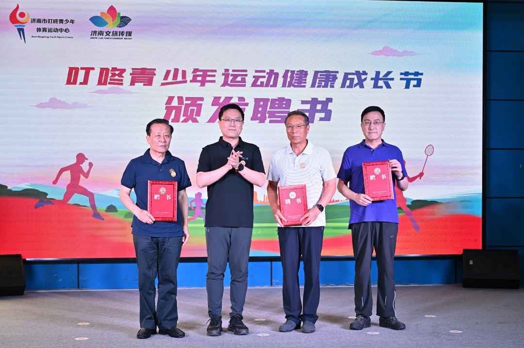 隨后,張熙為市人大常委會原副主任鄒世平頒發(fā)“叮咚青少年體育運(yùn)動中心名譽(yù)主任”聘書,為省委原副秘書長杜文彬、濟(jì)南日報(bào)報(bào)業(yè)集團(tuán)原副總編輯尹波頒發(fā)“叮咚青少年體育運(yùn)動中心專家顧問”聘書。