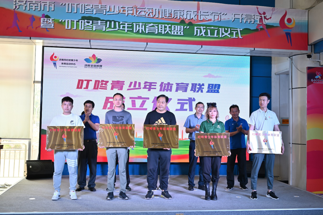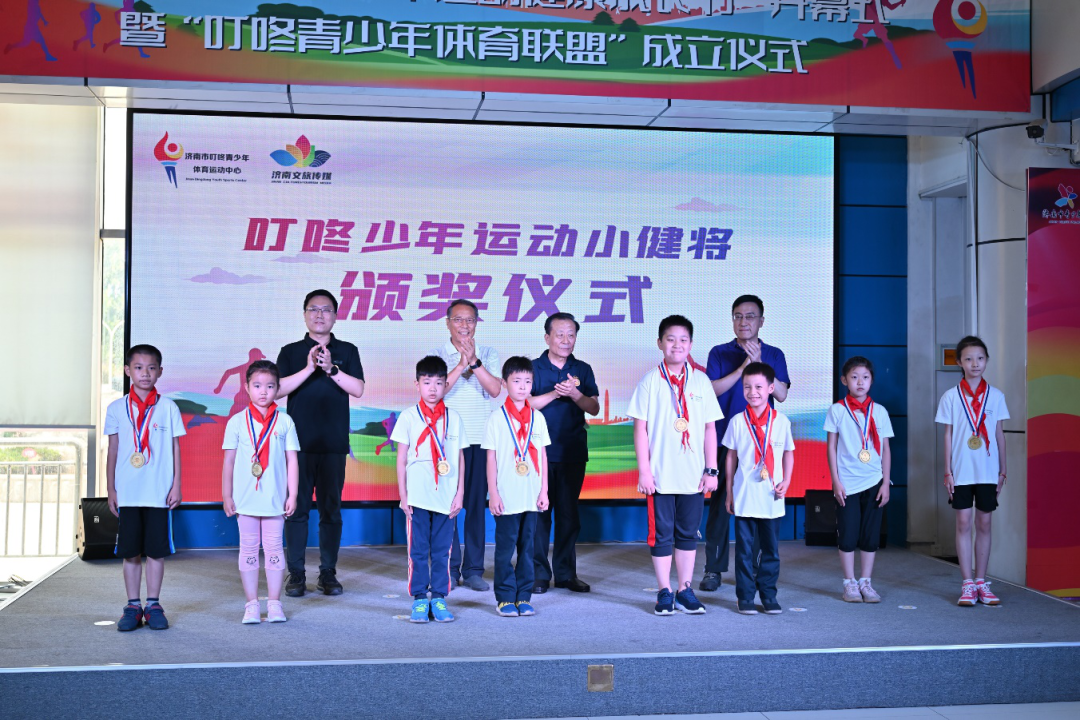 儀式上,參會領(lǐng)導(dǎo)為“叮咚青少年體育聯(lián)盟”代表授牌,并為“運(yùn)動小健將”代表發(fā)放獎牌。最后,參會領(lǐng)導(dǎo)登臺共同啟動 2022年濟(jì)南市“叮咚青少年運(yùn)動健康成長節(jié)”,標(biāo)志著“叮咚青少年體育聯(lián)盟”同步正式成立。