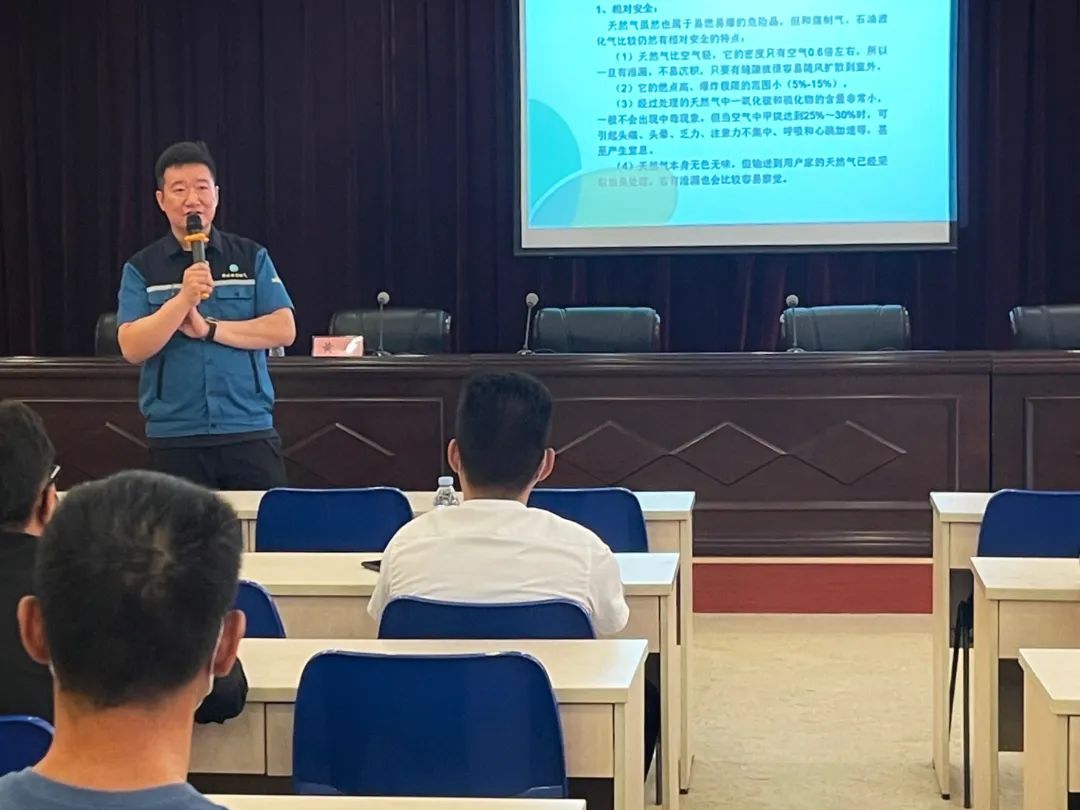 本次培訓邀請濟南港華燃氣有限公司黃海工程師授課,培訓內容涵蓋燃氣基礎知識、相關法律法規、燃氣設備、設施的安全使用、應急處置方法等方面。黃海工程師結合大量現實案例,對燃氣使用過程中的安全隱患進行深入剖析。與會人員結合自身情況和實際問題,主動參與培訓互動問答,交流分享燃氣日常操作實務,現場氣氛活躍,成效顯著。