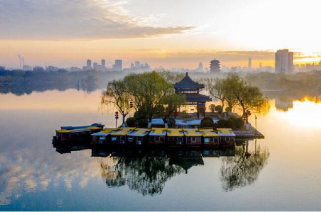 每當夜幕降臨或晨曦時分,圓潤雄渾的鐘聲響徹云霄,經曲岸水面回蕩互激,與周圍蒼煙暮靄、水樹應和而構成一種意境。由近及遠,繞耳不息,使人聽后心明意凈,恍入夢境。與金鐘鳴響相對應的是蛙聲寂靜。大明湖有“蛇不見,蛙不鳴”的傳說,這是一大生態之謎。每逢盛夏,護城河及北園一帶蛙聲聒噪,響成一片,而大明湖內卻無一聲蛙鳴。這一鳴一靜形成鮮明對比,乃大明湖一大特色。