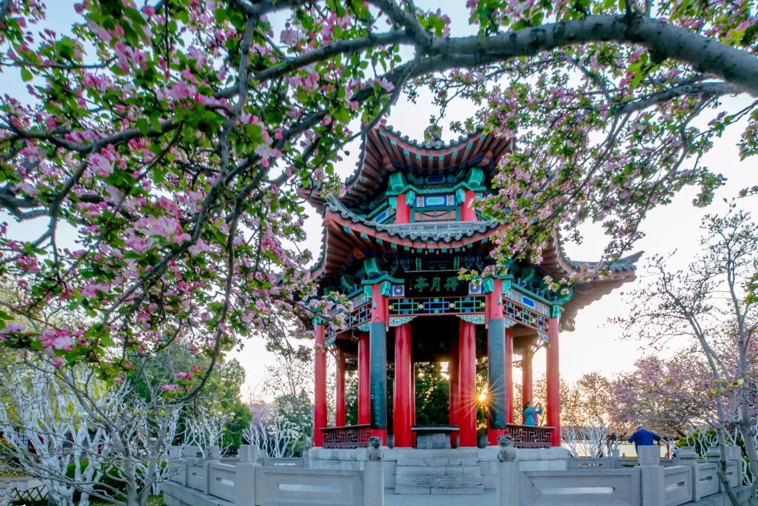 靜花堂南鄰,小滄浪亭東鄰,矗立著一座紅柱重檐八角亭,名“得月亭”,與湖山一覽樓同建于1929年。近水樓臺先得月,此亭近湖、近池,不唯得月,亦更得花,春天玉蘭、海棠花開時節,景色絢麗。