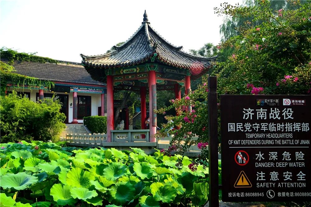 大明湖滄浪亭位于濟南大明湖北岸,以修鐵公祠之余料所建。依山傍水,繞以長廊,借大明湖水景入園。小滄浪亭踞園中臨湖處,三面荷池,境界清幽。登亭四眺,全湖一覽盡書。晴明之日,可見十里外的千佛山倒影。