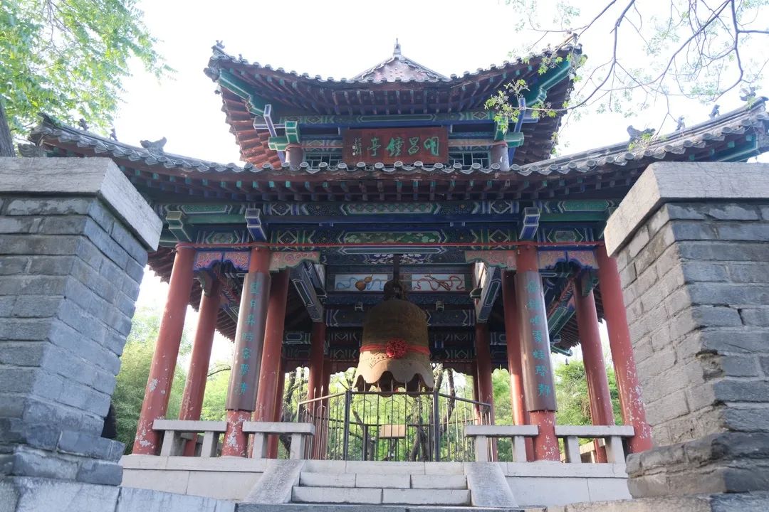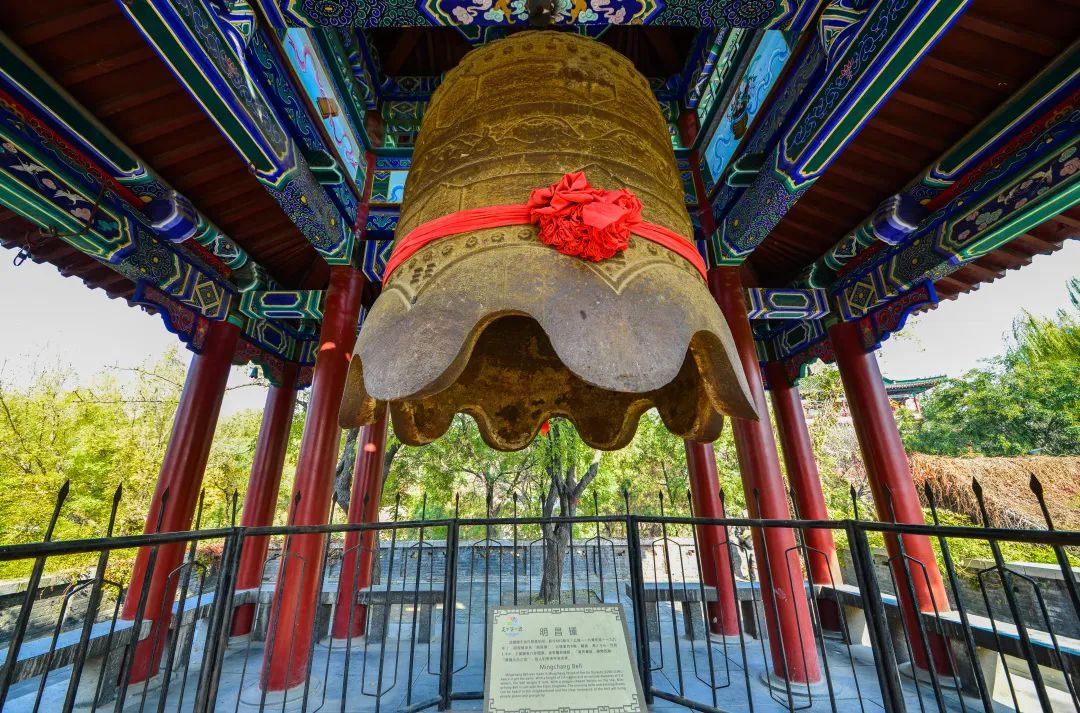 在大明湖南豐祠晏公臺上有一鐘亭,亭內懸一古鐘。該鐘始建于金代明昌年間(公元1190-1196年),高2.3米,口徑1.7米,厚0.13米,重8000公斤,懸掛于6米高臺之上。