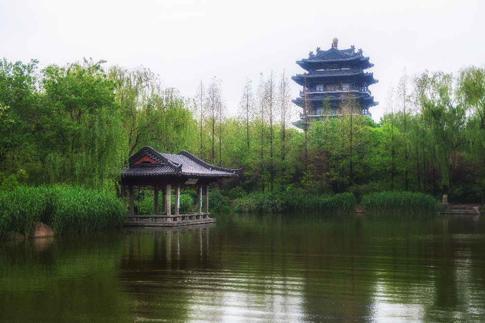 此亭精美,選址亦佳。九曲亭,又名藕亭。六角攢尖,單檐寶頂,位于大明湖景區稼軒祠北湖畔。此亭原名覺漚亭,今稼軒祠原為李(李鴻章)公祠,此亭為其一部分。