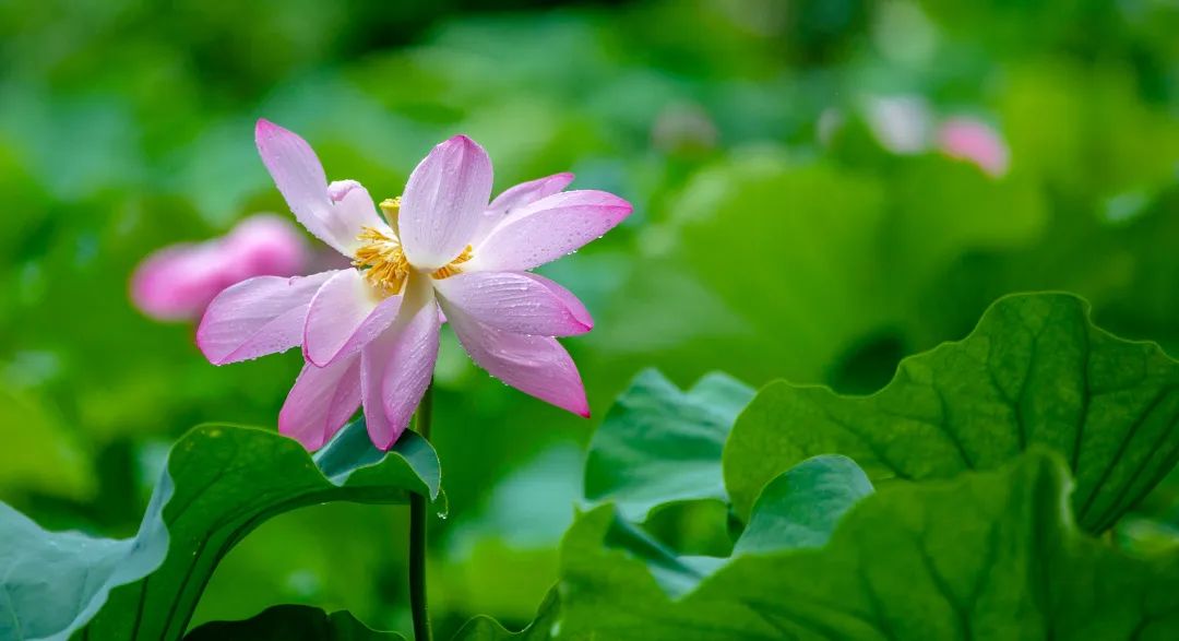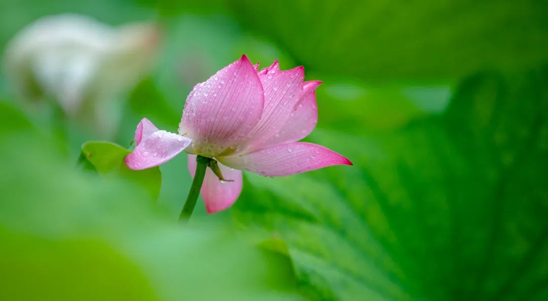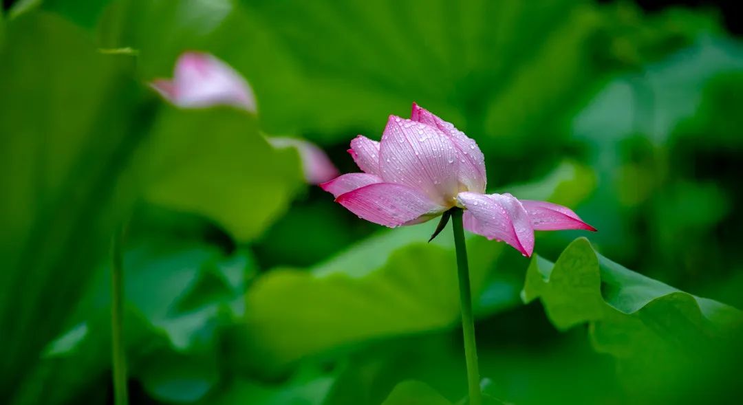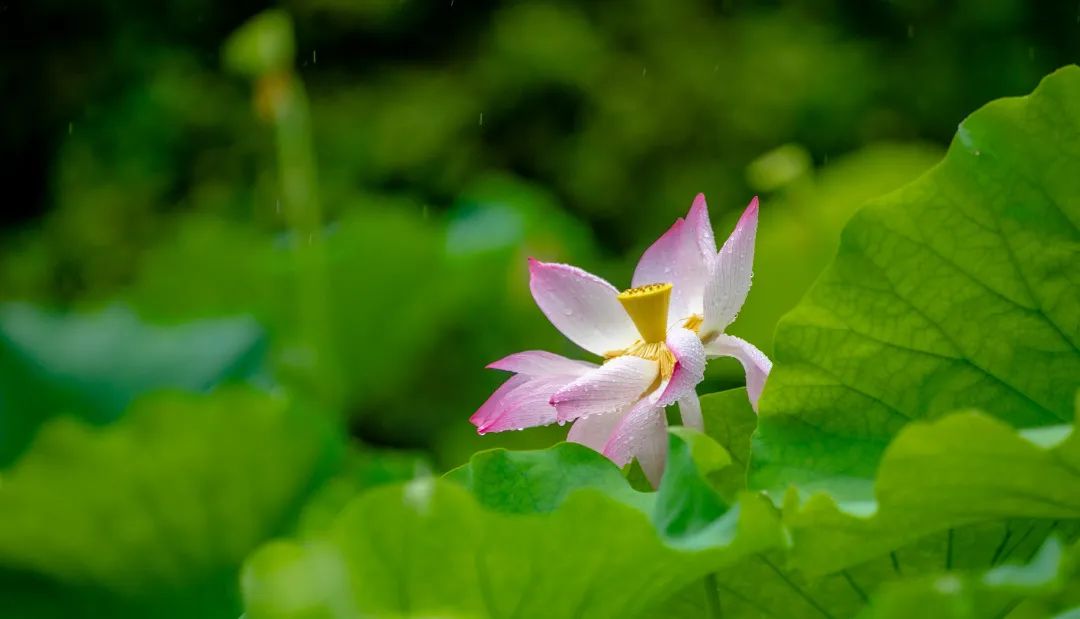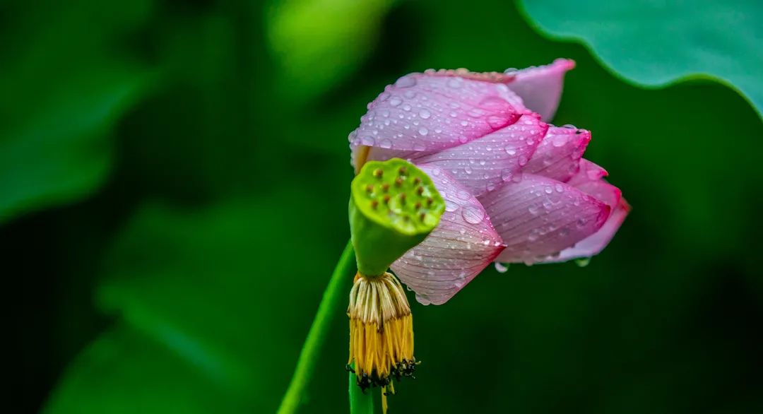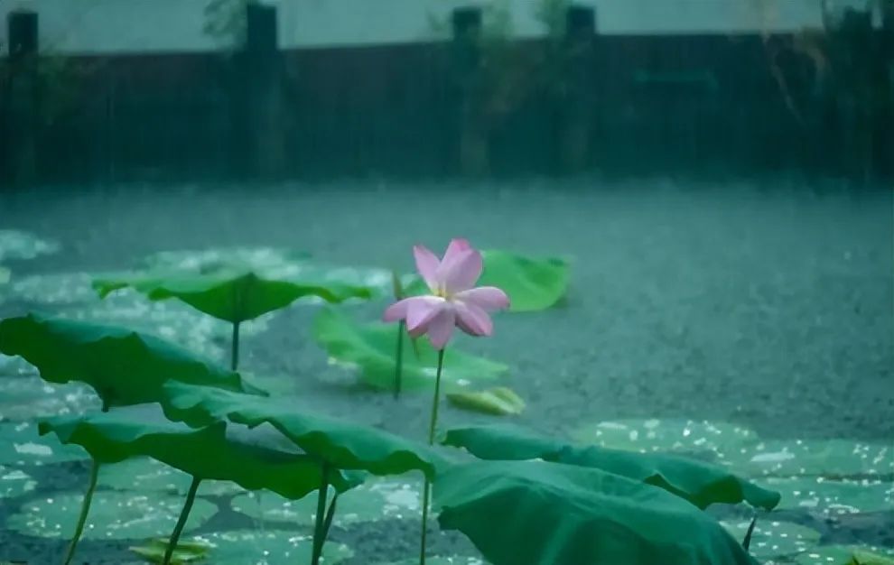 幾只蜂兒依舊在雨中繞著荷花飛舞著