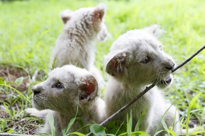 6月2日,剛出生2個多月的罕見三胞胎小白獅在濟南野生動物世界保育室玩耍,被鏡頭記錄了下來,三個小家伙全身雪白,爪子粉嫩,非常可愛!保育員說,三只小白獅是在3月29日出生,兩雄一雌。白獅本身就十分稀有,而一胎生出三只小白獅更是非常罕見,期待小白獅早日與游客見面。