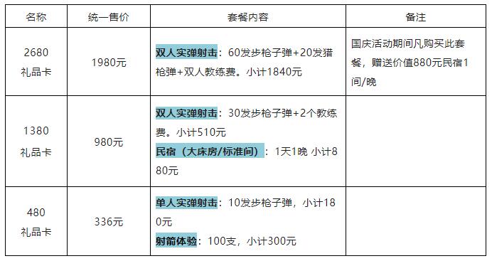 ①實彈射擊:小口徑5發(fā)+獵槍5發(fā)+單人1對1教練費
