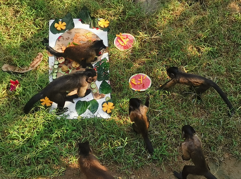 濟南野生動物世界為動物們準備了定制月餅,鮮肉、水果、蔬菜、窩頭……口味齊全、應有盡有,通過食物豐容的方式將食物花樣呈現,增強動物們的探索能力。