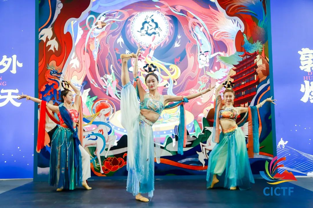 在絲綢之路展區(qū),各類帶有敦煌文化元素的周邊文創(chuàng)產(chǎn)品琳瑯滿目,吸引了不少市民前來觀看購買,現(xiàn)場更有舞蹈演員精彩演繹了敦煌壁畫上的舞蹈形式。