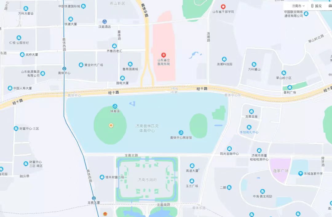 濟南奧林匹克體育中心北起經十東路,南至龍奧北路,東起奧體東路,西至奧體西路,項目總占地約81公頃,總建筑面積約35.7萬平方米,場館面積共約26.8萬平方米,商鋪面積共約6.64萬平方米、停車場面積7萬平方米。總投資約46億元。
