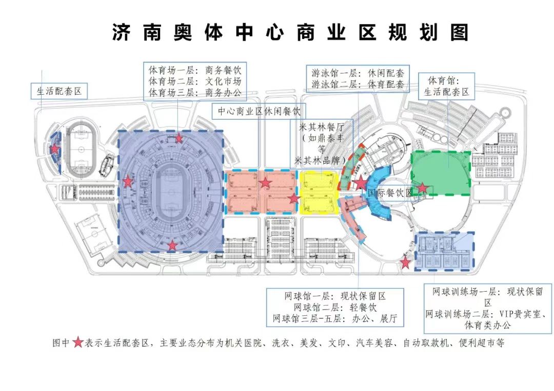體育場一層規劃為商務餐飲區,待招商鋪100-2000㎡約9家;