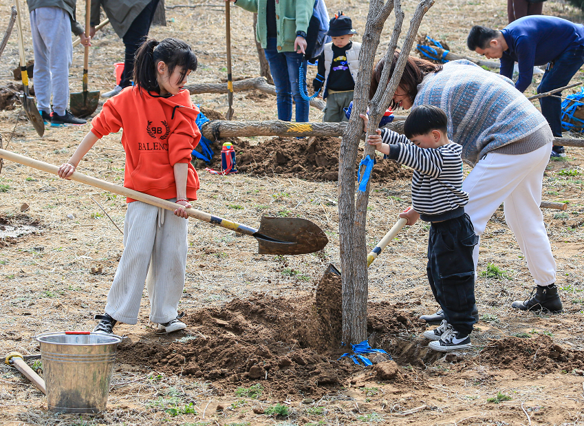 不少家庭全家出動,帶孩子體驗“動手”的意義,一起在濟野留下一抹綠色。