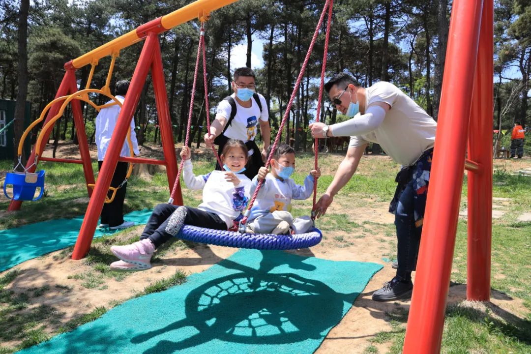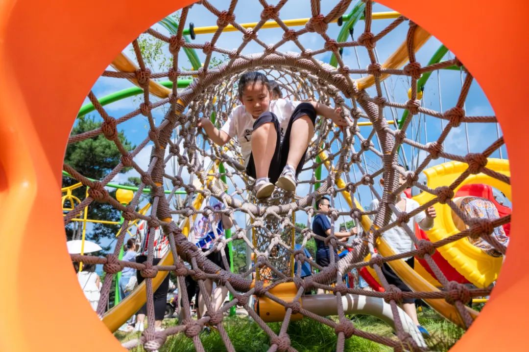 歡樂部落里各種好玩的網紅滑梯、秋千、蹦床等無動力設施仿佛充滿魔力,把小朋友們都牢牢地黏在上面,玩多久都不想離開。