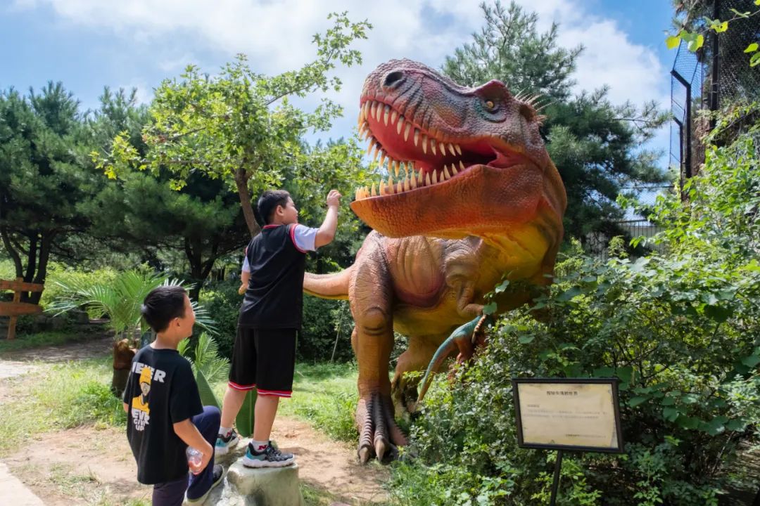 到尖叫部落看大恐龍,它們張牙舞爪,低聲吼叫,令人觸目驚心!逃離了驚險刺激的侏羅紀世界,來到海拔近九百米的跑馬嶺之巔,既可遠眺不遠處的泰山玉皇頂,又可以一覽眾山河,感受祖國江山如此多嬌。