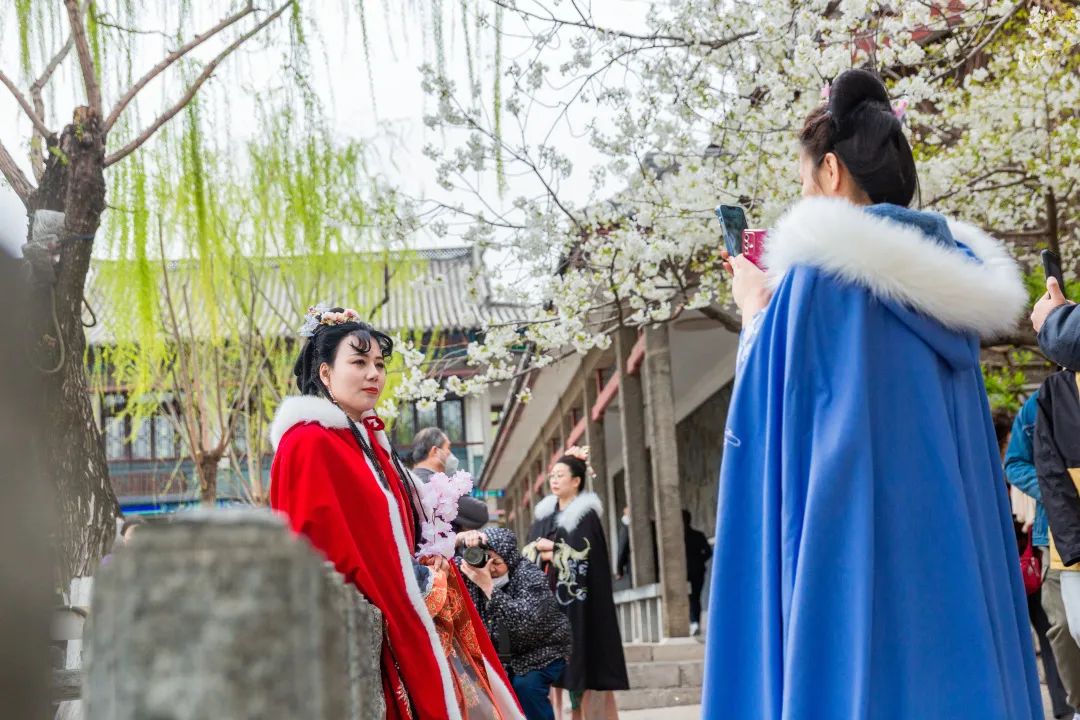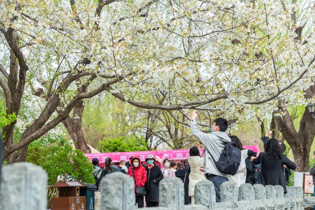 每年春天,五龍潭都會舉辦櫻花節,市民和游客們既能觀賞到美麗的櫻花,也可以沉浸式體驗櫻花文化。花開之際,五龍潭總是格外熱鬧。春水泛波,櫻花勝雪,濟南的春天,泉城的浪漫,盡在這天朗水清、春櫻爛漫之間。園中花柳相映,移步換景,碧色扶風,花色點綴,潭水蕩漾間,有柔美的花瓣隨風飄落。