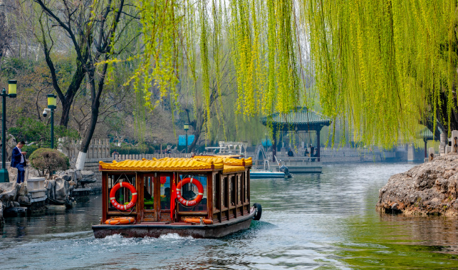 春天的泉城濟南,除了漫步游覽,乘船也是不錯的選擇。護城河早已實現全線通航,穿越大明湖,鏈接黑虎泉、趵突泉、五龍潭三大泉群以及解放閣、泉城廣場、百花洲......一船連百景,閱盡泉城風光,手握一杯泉水茉莉花茶,窗前,泉水叮咚,垂柳含情。