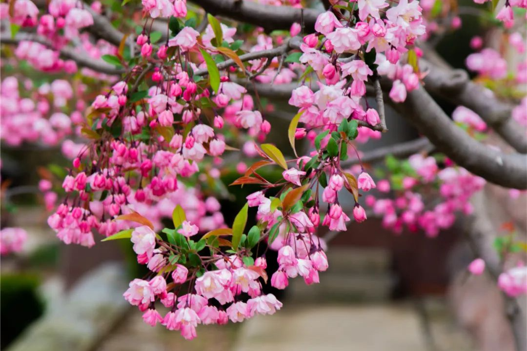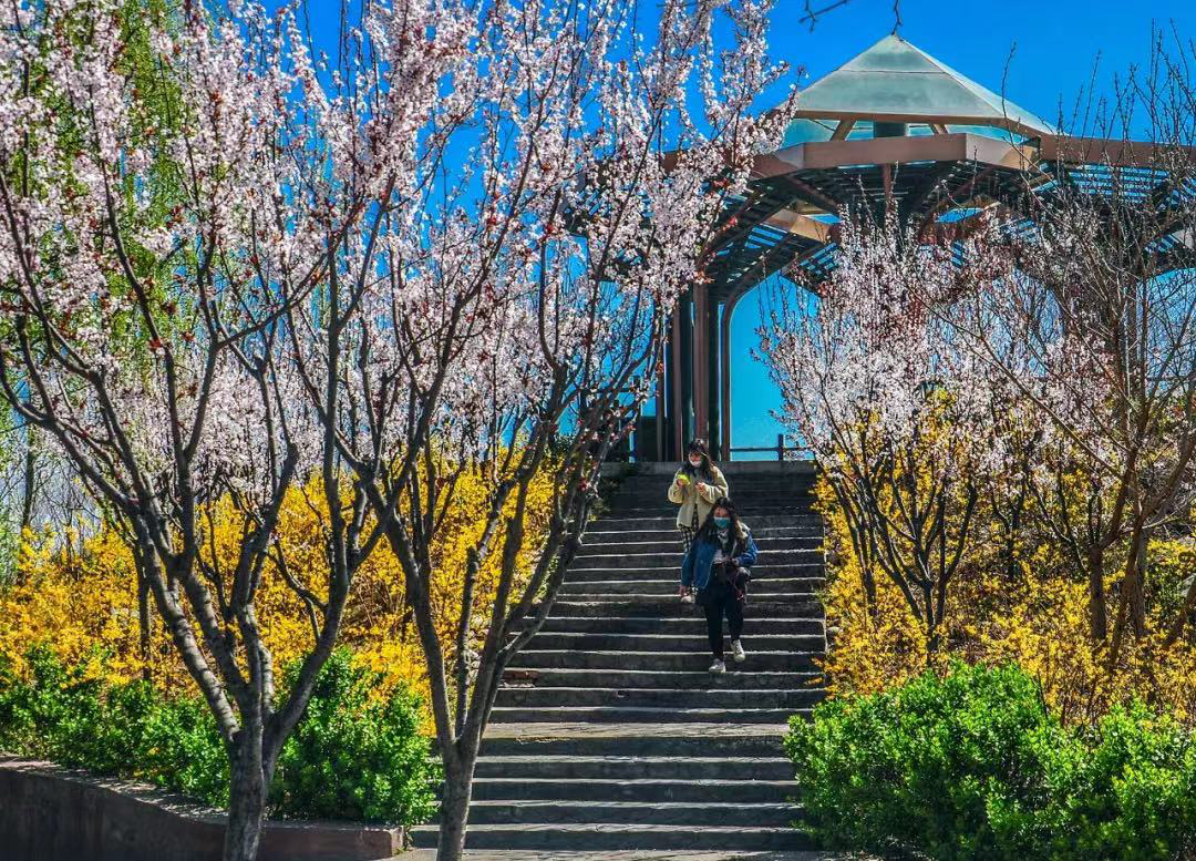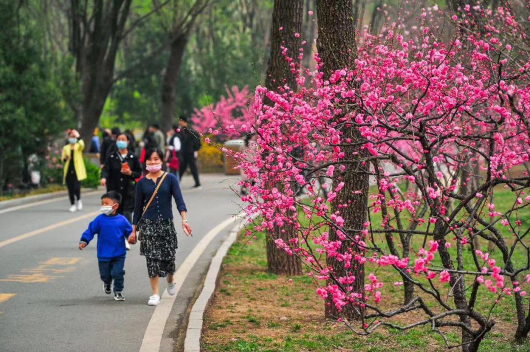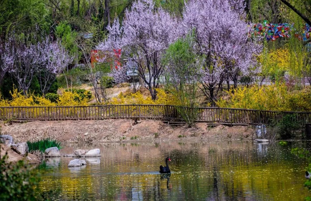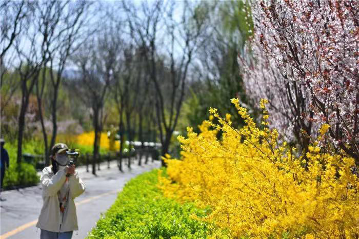 迎春花、海棠、玉蘭、榆葉梅等爭相開放