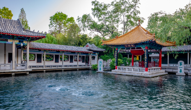 在天下第一泉景區內漫步