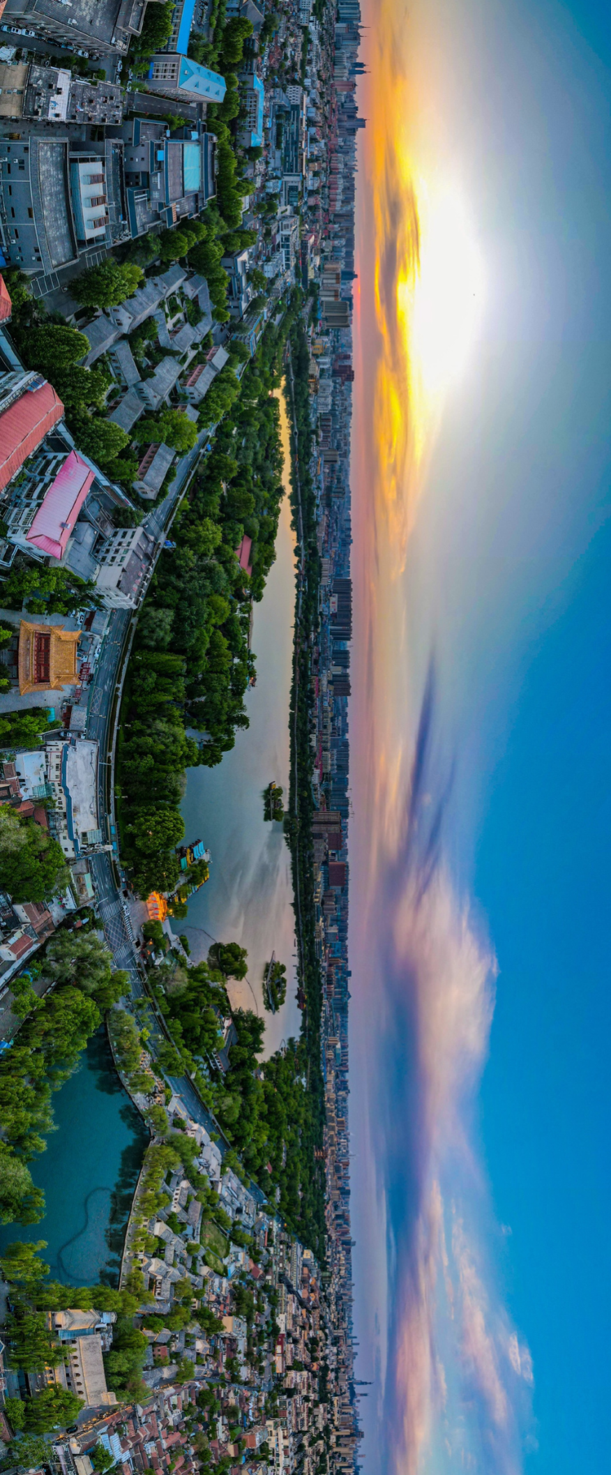漫天的晚霞與濟南這座城市交相輝映