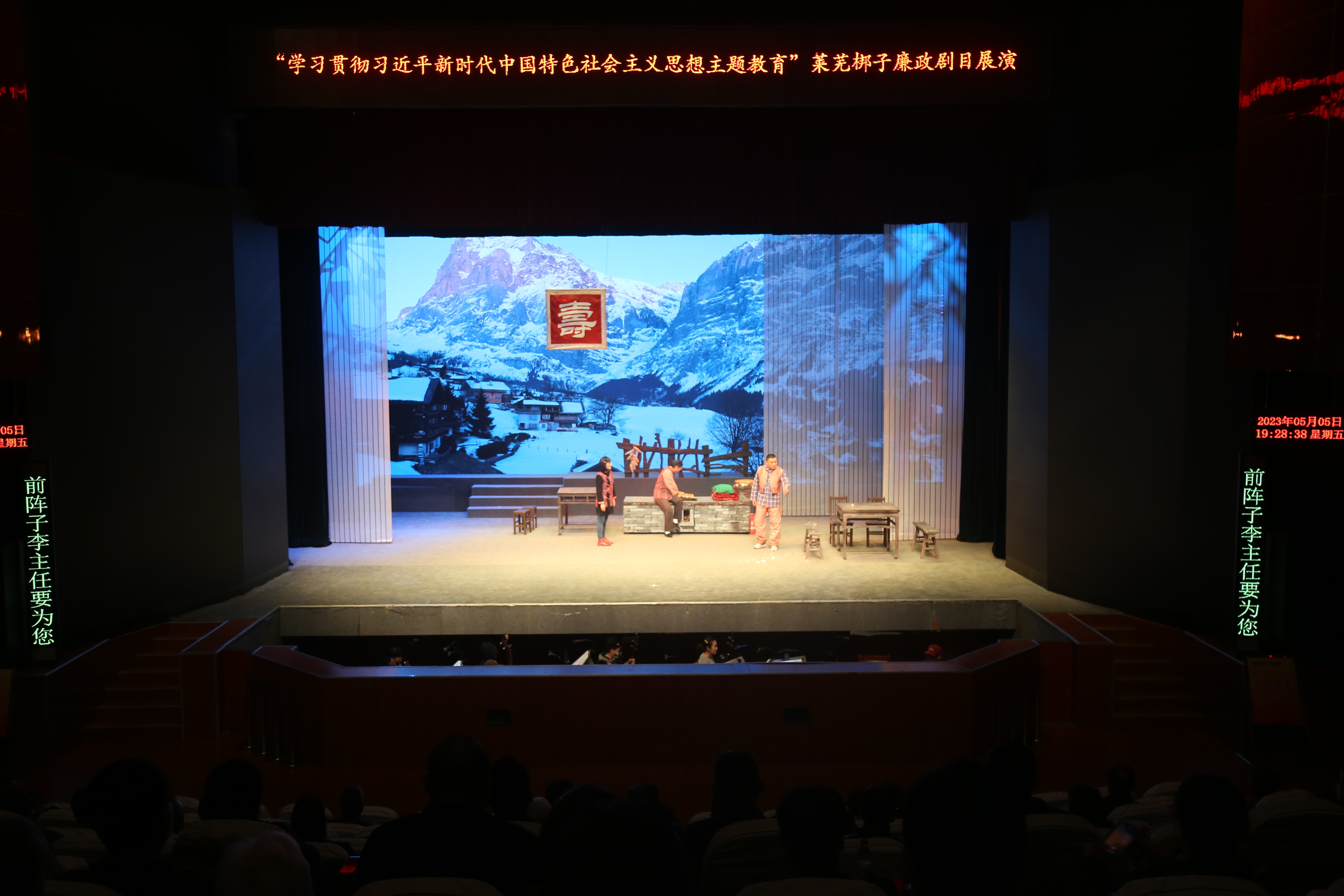萊蕪梆子是濟南市萊蕪區地方傳統戲劇,國家級非物質文化遺產,《兒行千里》作為萊蕪梆子的代表做之一,講述了高官鄭耀忠榮歸故里為母親祝壽,借機送禮者蜂擁而至,鄭耀忠步步沉淪,鋃鐺入獄,而后老母親竭力籌措替兒子償還贓款,并對兒子諄諄教誨,最終鄭耀忠幡然醒悟,戴罪立功。該劇發人深省,給全體黨員干部及入黨積極分子帶來了強烈的視覺沖擊和心靈震懾,進一步警醒大家要堅定理想信念,不斷增強拒腐防變的思想認識和能力。