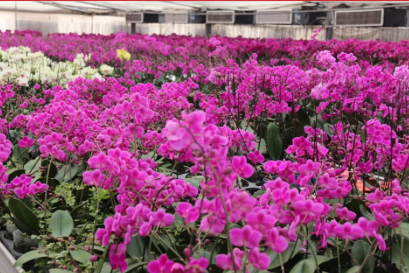 讓我們跟著鏡頭,一起領(lǐng)略下濟(jì)南國際鮮花港的蝴蝶蘭吧!這里的蝴蝶蘭是從幼苗培育開始,經(jīng)過精心呵護(hù),規(guī)模化生產(chǎn),標(biāo)準(zhǔn)化管理,現(xiàn)迎來了花期,成片的蝴蝶蘭色彩斑斕、百花盛開,仿佛置身于花海中,在欣賞百花盛開場(chǎng)景的同時(shí),選購到您稱心如意的年宵花。