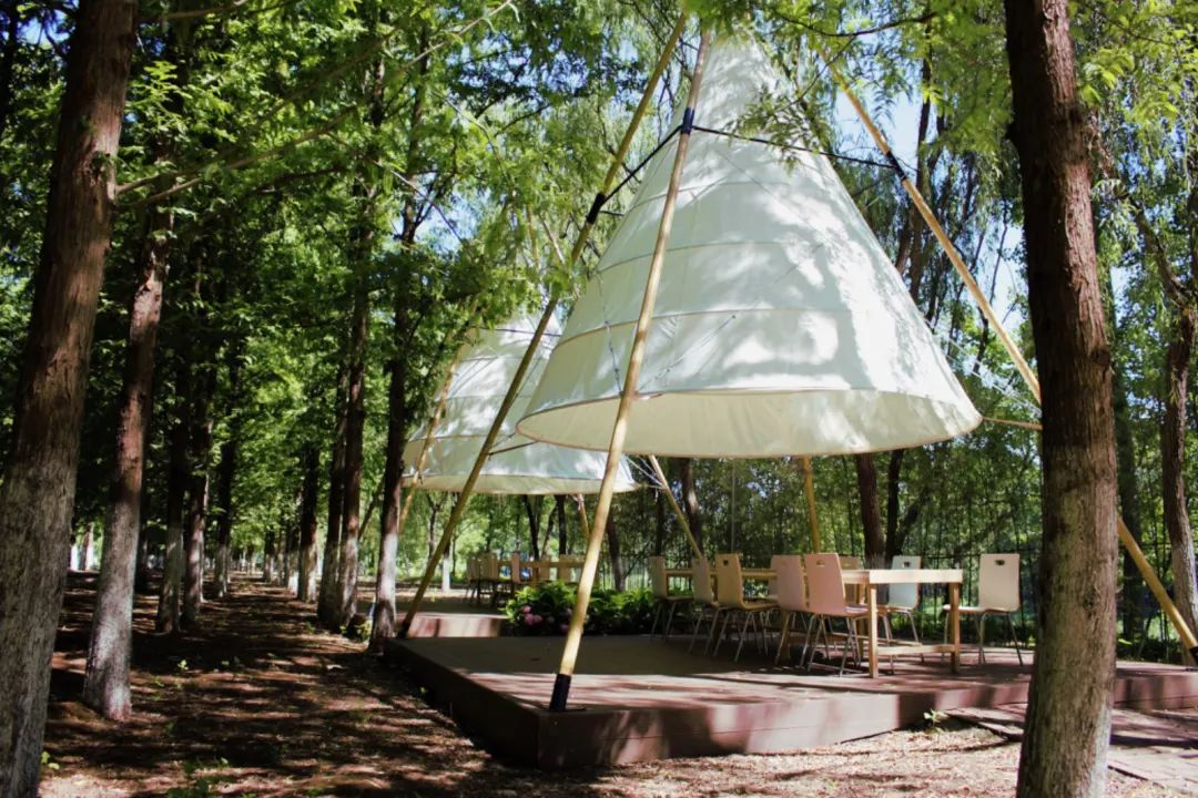 杉水間營地位于鮮花港北區,營地占地面積約9000平方米,可一次性同時容納200-300人次歡聚,適宜團建聚會和網紅打卡。擁有天幕、錐形、餐帳、多峰等各類帳篷,可同親朋好友來體驗“露營+音樂+燒烤+花卉+篝火+動物”多重歡樂。
