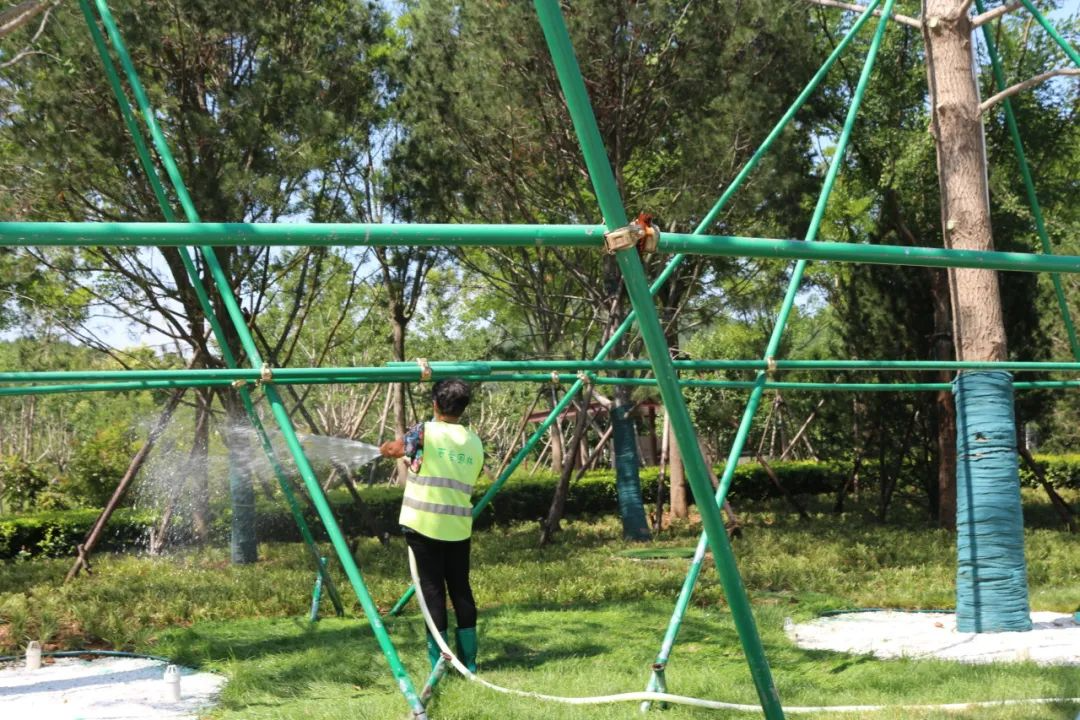 一支“規(guī)范化、精準(zhǔn)化”的養(yǎng)護(hù)隊(duì)伍養(yǎng)護(hù)著景區(qū)的一草一木,對佛慧山牌坊兩側(cè)的銀杏樹、林蔭大道兩側(cè)的五角楓、境水映秀噴泉四周等區(qū)域進(jìn)行精細(xì)化養(yǎng)護(hù)管理,澆水方式上采用噴灌帶、人工管道澆灌等相結(jié)合方式。根據(jù)現(xiàn)場情況采用高空作業(yè)車、粉碎車等先進(jìn)的園林機(jī)械設(shè)備,提高了精細(xì)化養(yǎng)護(hù)管理,打造出一片生機(jī)勃勃、綠樹成蔭、花團(tuán)錦簇的景色。