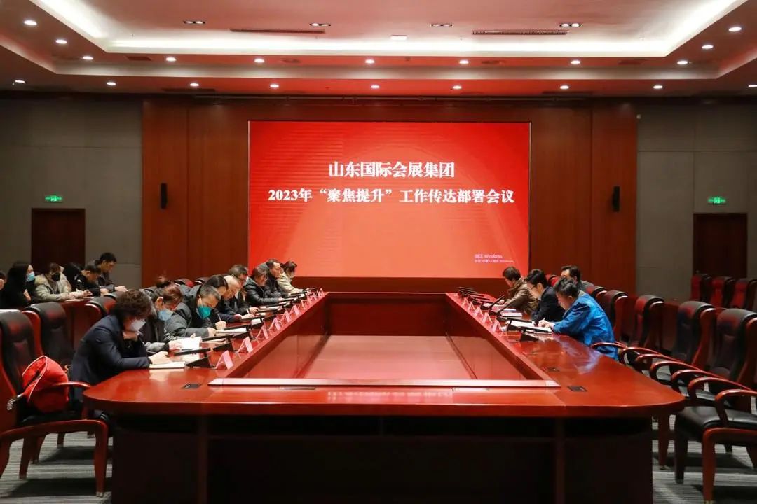 山東國際會展集團召開2023年“聚焦提升”工作傳達部署會議,深入貫徹落實文旅集團2023年“聚焦提升”工作動員大會精神,并對近期重點工作進行安排部署。會議要求,一是集團上下要深入領會學習文旅集團“聚焦提升”會議精神,堅定不移抓好貫徹落實,確保各項目標任務圓滿完成;二是收心歸位,統一思想振奮精神迅速進入工作狀態。以“起步即沖刺、開局即決戰”的姿態,快速進入工作狀態;三是落實落細,全力以赴抓好當前各項重點工作,做好2023年展會排期、展館設施設備維修保養等工作,提高展館智慧化水平,切實提高展會服務標準,提升會展服務水平,確保全年工作保質保量完成。