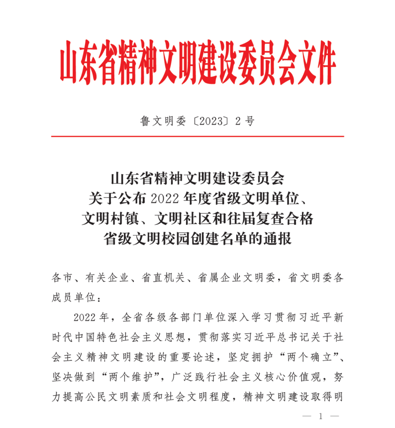 近日,山東省精神文明建設委員會下發《關于公布2022年度省級文明單位、文明村鎮、文明社區和往屆復查合格省級文明校園創建名單的通報》(魯文明委〔2023〕2號),濟南文旅集團及權屬單位濟南天下第一泉風景區服務中心、濟南奧林匹克體育中心順利通過2022年度省級文明單位復查,濟南百合園林集團有限公司獲評2022年度新增省級文明單位。