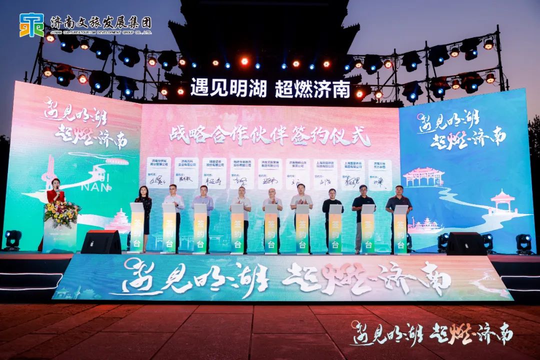 為了更好地踐行“百”企聯(lián)動(dòng),搭建以企業(yè)為主體、市場(chǎng)為導(dǎo)向的開(kāi)放型合作平臺(tái)。發(fā)布會(huì)現(xiàn)場(chǎng)舉行了文旅集團(tuán)合作品牌簽約儀式。濟(jì)南文旅集團(tuán)分別與濟(jì)南舜耕山莊集團(tuán)公司、梅曄生物醫(yī)藥股份有限公司、上海嗶哩嗶哩科技有限公司、國(guó)金證券股份有限公司、上海復(fù)星體育集團(tuán)有限公司、濟(jì)南萬(wàn)科企業(yè)有限公司、濟(jì)南方特東方神畫(huà)、濟(jì)南華僑城商業(yè)管理公司等品牌代表進(jìn)行戰(zhàn)略協(xié)議簽訂。未來(lái)簽約單位將圍繞泉城夜經(jīng)濟(jì)課題研究、文旅體產(chǎn)業(yè)運(yùn)營(yíng)、智慧文旅建設(shè)、文旅產(chǎn)業(yè)衍生品開(kāi)發(fā)、投融資項(xiàng)目合作、文旅IP項(xiàng)目打造等方面開(kāi)展合作。