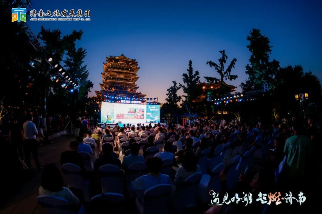 發(fā)布會(huì)上,與會(huì)領(lǐng)導(dǎo)、嘉賓共同啟動(dòng)“遇見(jiàn)明湖”項(xiàng)目,超然樓華彩初上,標(biāo)志著網(wǎng)紅濟(jì)南打造、泉城夜經(jīng)濟(jì)發(fā)展拉開(kāi)嶄新序幕。