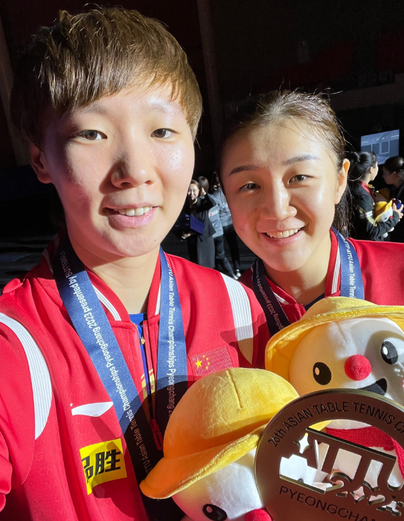 魯能俱樂部乒超女隊隊員陳幸同獲單打季軍,錢天一搭檔梁靖崑獲得混雙亞軍。(供稿 魯能乒乓球俱樂部)