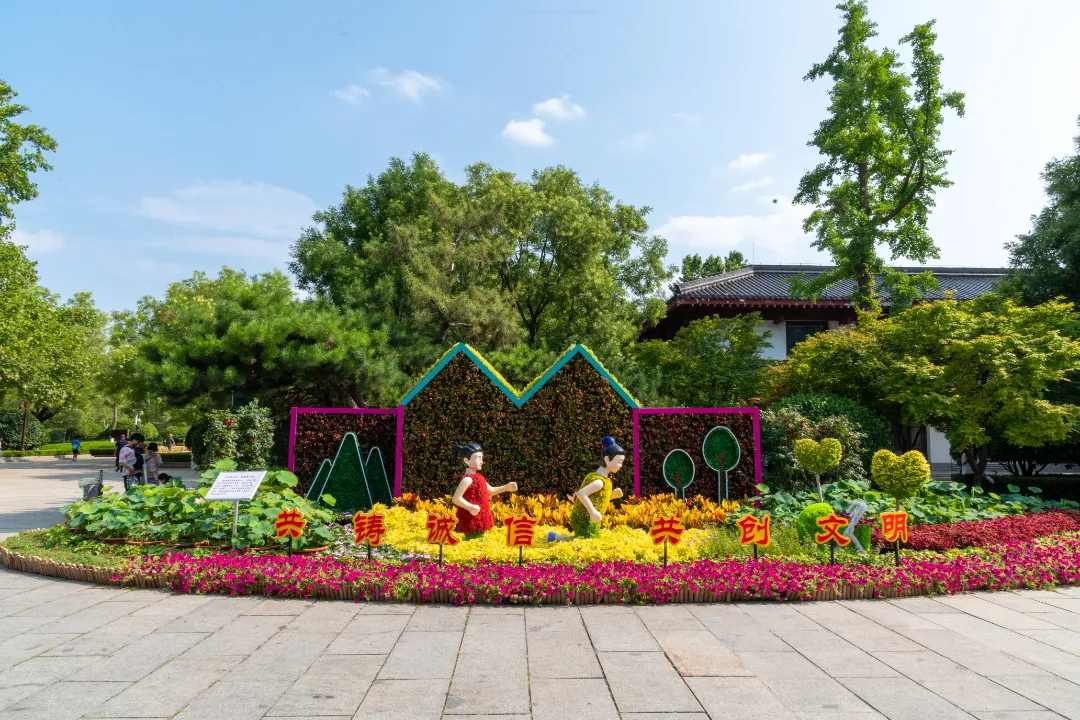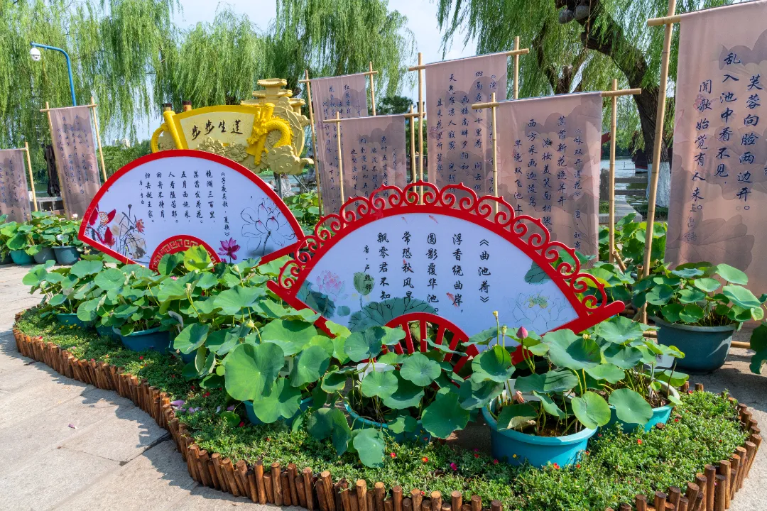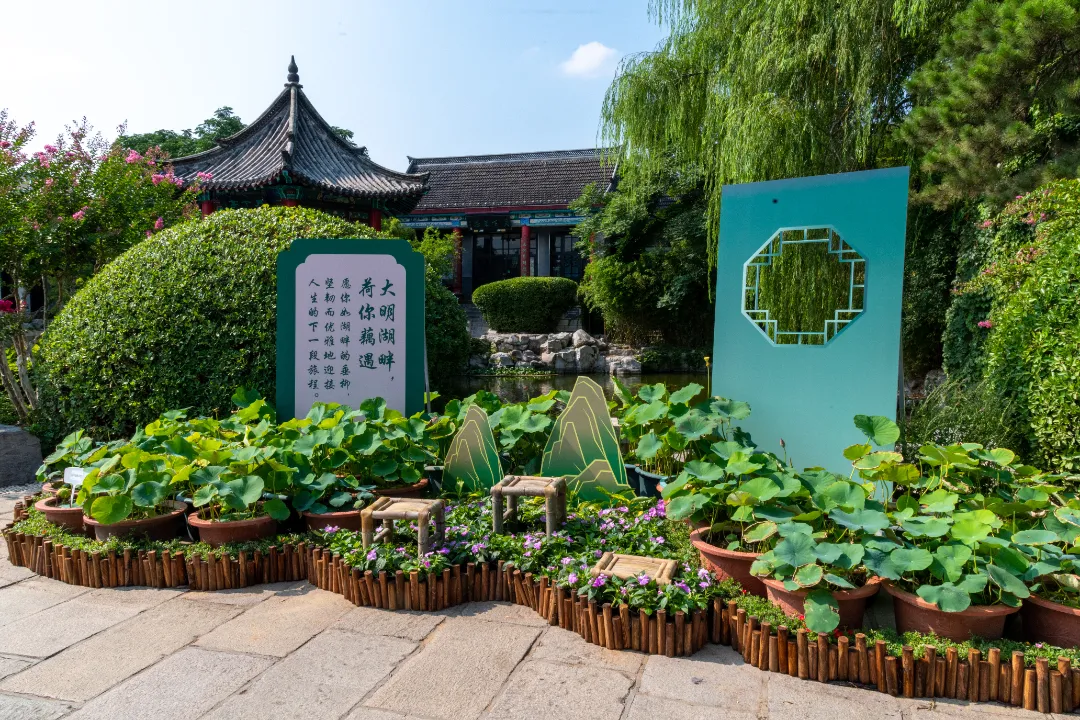 本屆荷花藝術節以“夏日明湖,荷你藕遇”為主題,在延續往屆荷展視覺盛宴的基礎上,沿用荷展小景形式展示荷花藝術。展覽以觀賞大湖荷田內荷花為主,同時在大明湖景區內設置大、中、小型荷花小景共9組(含品種荷花),分別分布在大明湖景區東門至鋼琴廣場處,展出荷花800余盆、草花約8000盆,水生植物約200盆。每一處都蘊含著著匠心獨運與自然之美的和諧共生。這些小景不僅展現了荷花的千姿百態,更融入了深厚的文化底蘊,讓市民游客在觀賞中感受到荷花的清雅與高潔。