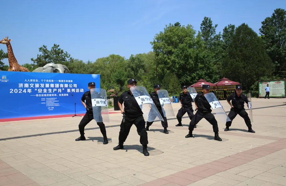 本次活動是針對集團所屬景區存在的各類風險隱患開展的精準培訓和演練。活動由防暴能力展示、應急逃生體驗、突發森林火災處置、動物防逃逸演練、防汛場景模擬推演、應急救護培訓等部分組成,旨在通過培訓、演練促進實戰能力提升。濟南天下第一泉風景區服務中心、集團所屬各單位以及章丘區消防救援大隊、山東振邦保安服務公司、歷下區礪兵退役軍人應急服務中心等單位100余人參加活動。