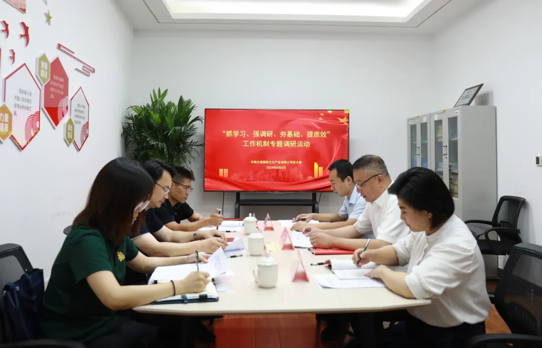 8月8日下午,濟(jì)南文旅集團(tuán)黨委委員、副總經(jīng)理王鋒帶隊(duì)赴濟(jì)南文旅國際文化產(chǎn)業(yè)有限公司開展“抓學(xué)習(xí)、強(qiáng)調(diào)研、夯基礎(chǔ)、提質(zhì)效” 工作機(jī)制專題調(diào)研,公司黨支部書記、董事長雷凱及支委會成員參加調(diào)研。