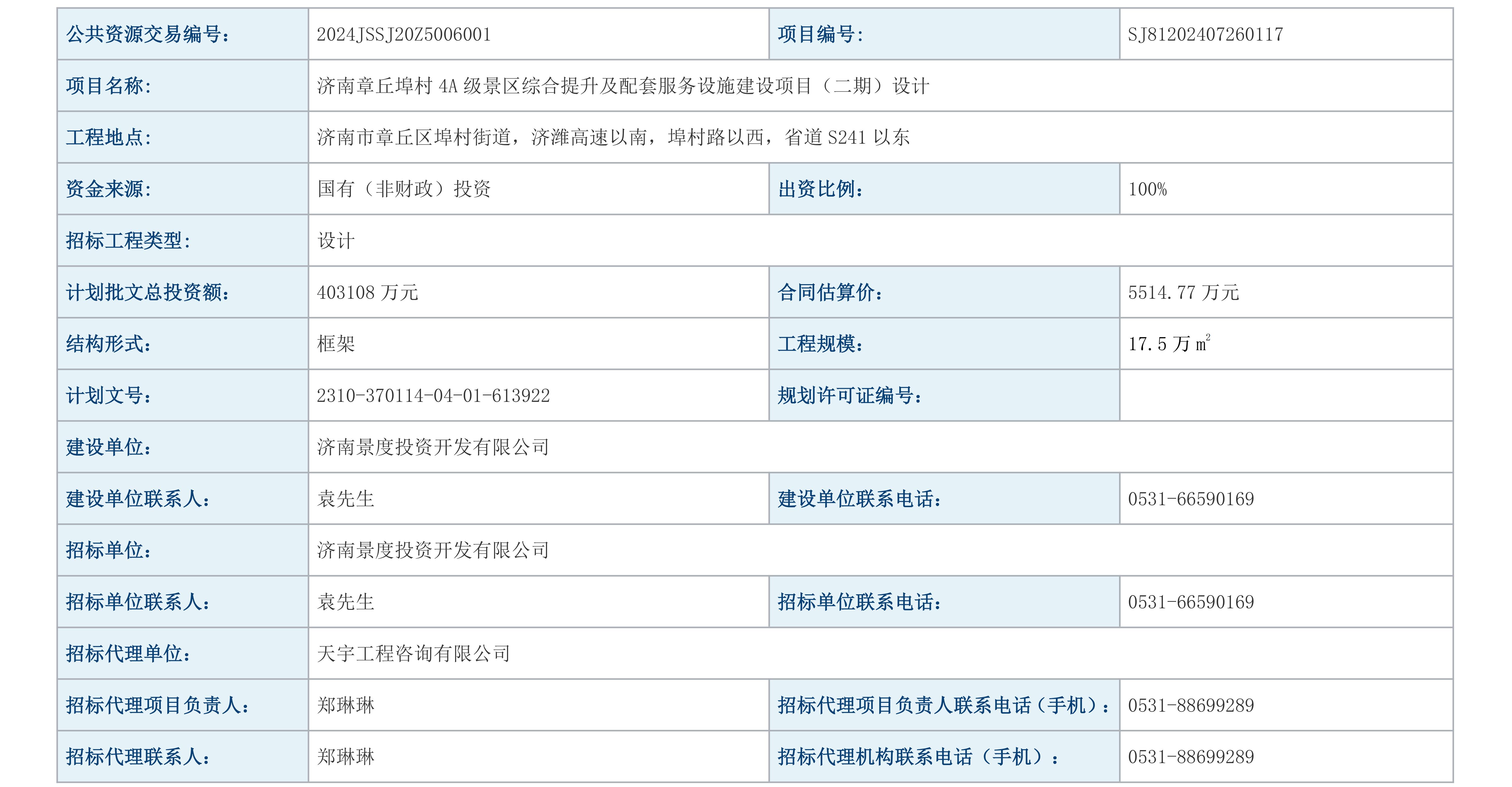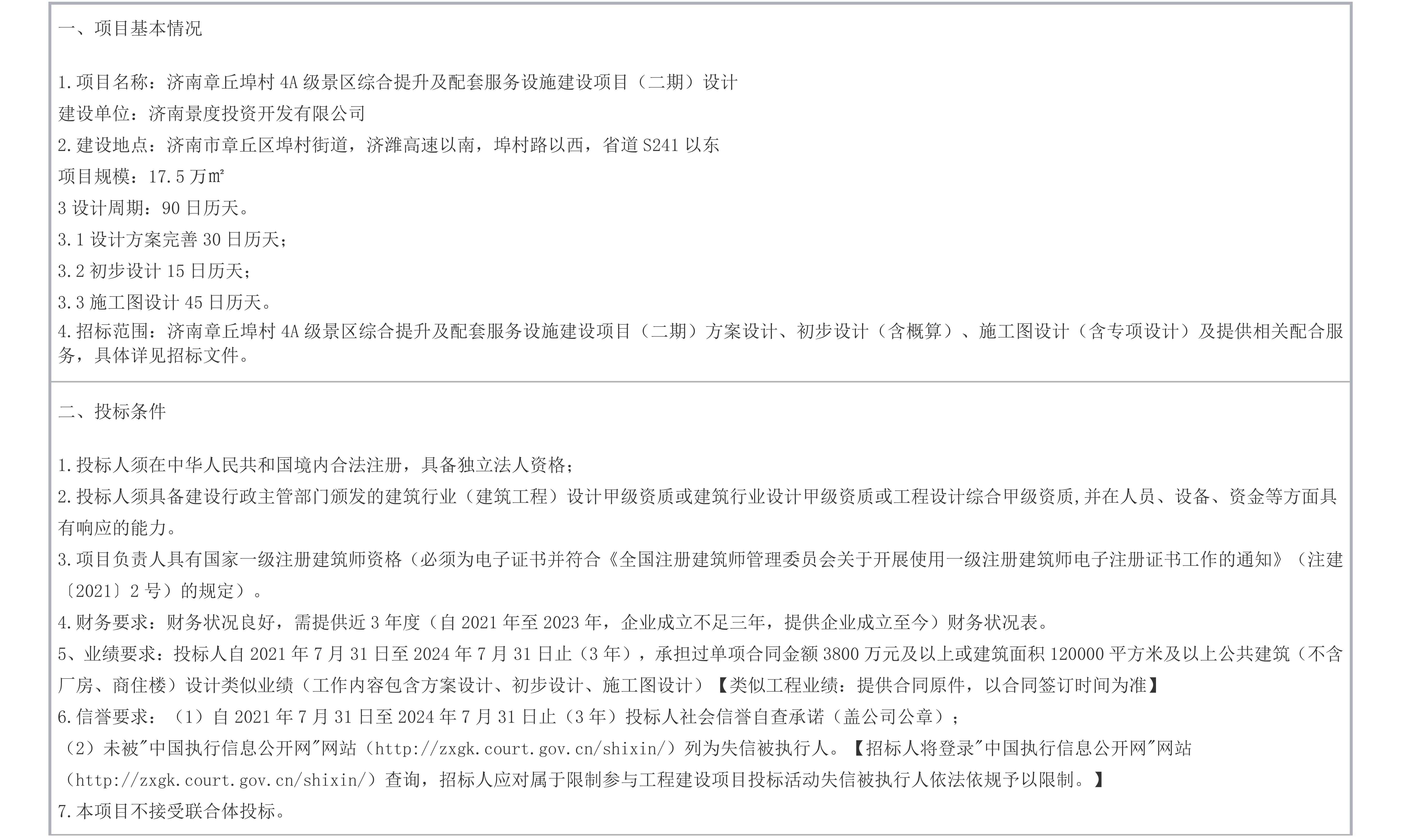 濟南章丘埠村4A級景區綜合提升及配套服務設施建設項目(二期)設計招標公告